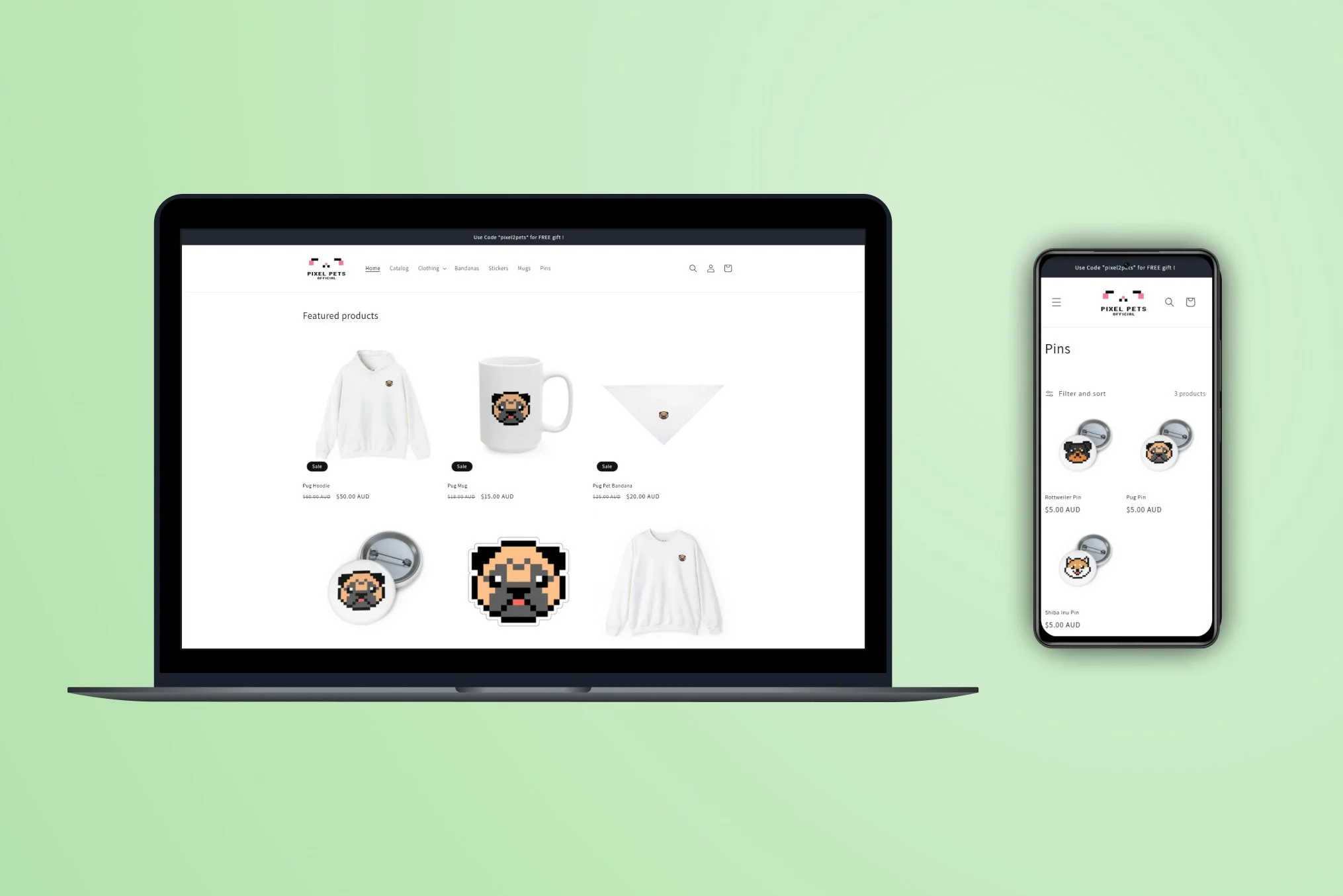 Launching a pixel-art product brand and e-commerce experience.