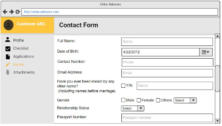 I worked with Orbis Advisors to design the user experience for a custom CRM system intended to streamline how the business collects client information and manages internal workflows.